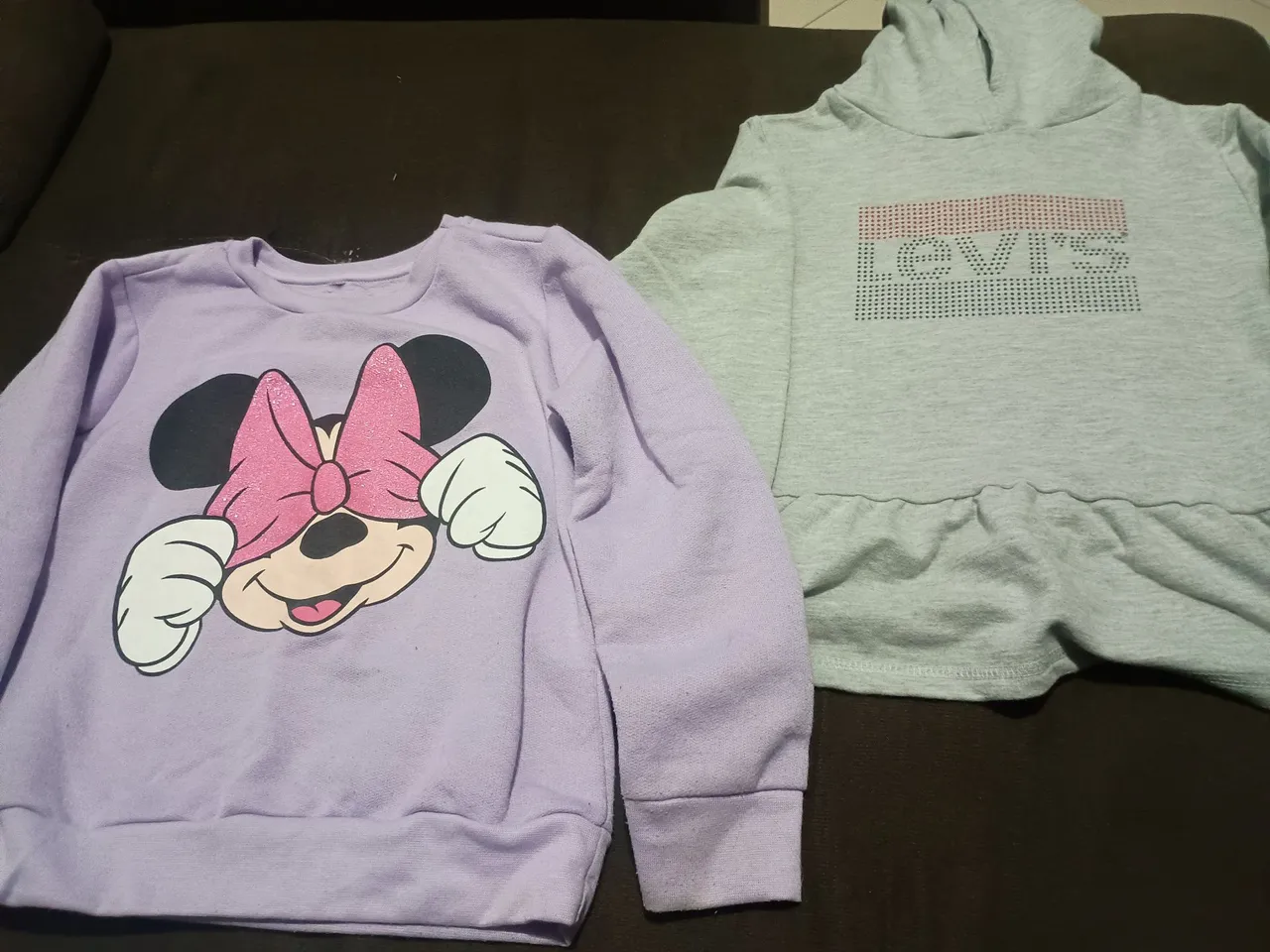 Lindos moletons infantis, uma com estampa da Minnie e a outra moletom da Levi's, perfeitas para compor looks estilosos e confortáveis. Tam 6 Retirar no campeche ou centro