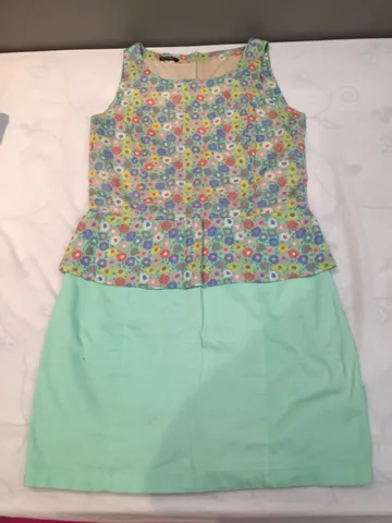Vestido estampado modelo justo, sem mangas, acinturado, forrado, abertura por zíper nas costas. Tamanho P. 100% algodão.