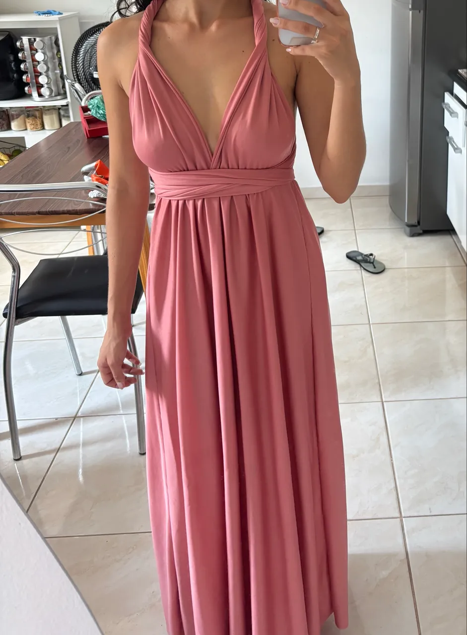 Deslumbre com o vestido multiformas! Versátil e elegante, este vestido é perfeito para diversas ocasiões. Crie looks incríveis com diferentes amarrações e arrase em qualquer evento. Conforto e estilo em uma só peça!