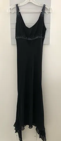 Lindo vestido social longo com aplicações Tamanho: P Cor: Preto