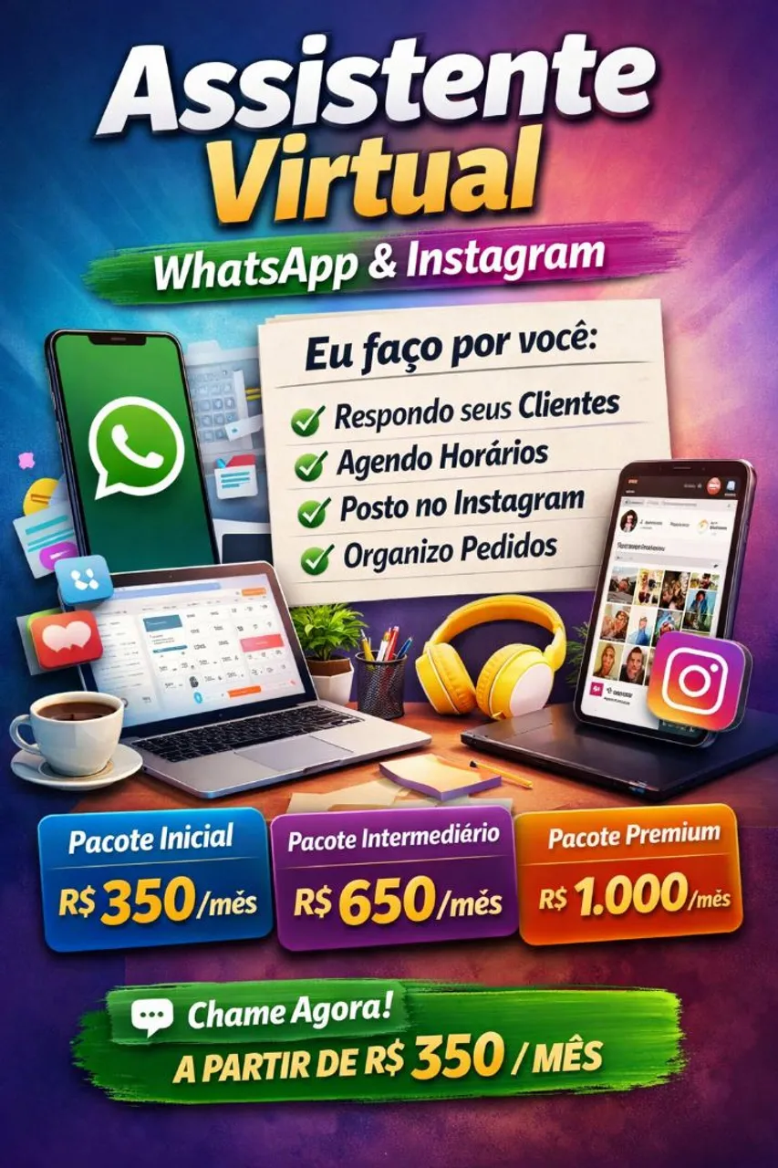 ? Eu cuido do seu WhatsApp e Instagram, enquanto você foca no que realmente importa: vender e atender bem.