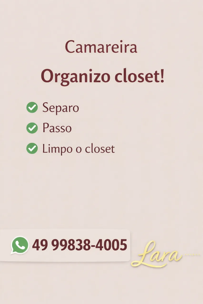 Organizo seu closet do seu jeito! R$80,00 p/h atendo em Florianópolis Cntt: