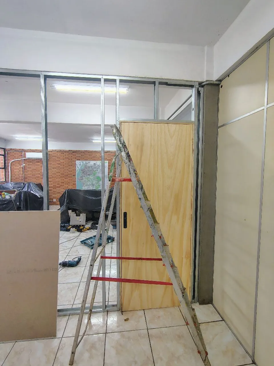 Contrução de divisória com material de gesso cartonado .