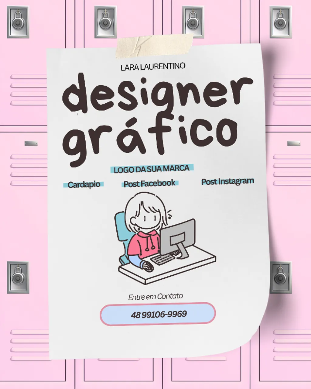 Olá! Me chamo Lara e trabalho com design gráfico profissional para empresas, com entregas rápidas e personalizadas.