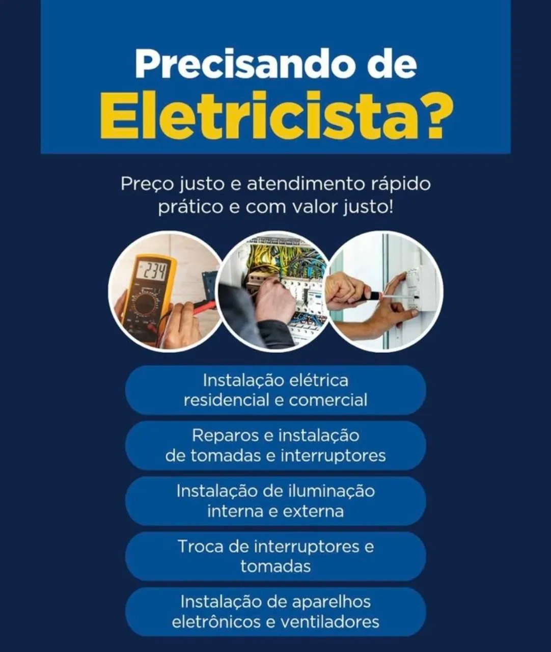 ? Eletricista Profissional - Instalações e Manutenção em Geral ? Serviços Elétricos Residenciais e Comerciais - Orçamento Grátis ? Eletricista Especializado - Atendimento Rápido e Seguro Me chame no WhatsApp: