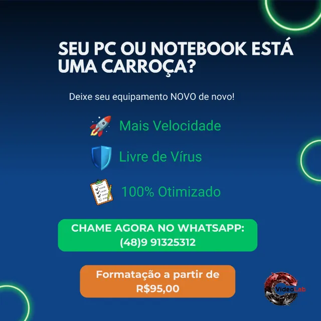 formato seu computador ou notbook! a partir de 95,00 Reais Faça um orçamento sem compromisso e gratuito!