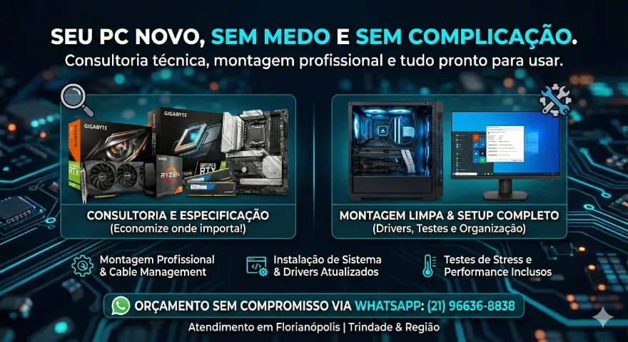 Montar um computador parece fácil nos vídeos, mas a realidade envolve compatibilidade de peças, atualização de BIOS, organização de cabos e o medo constante de danificar um componente caro. ?