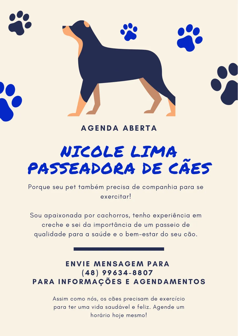Oi! Eu sou a Nicole Lima, passeadora de cães em Florianópolis e região.
