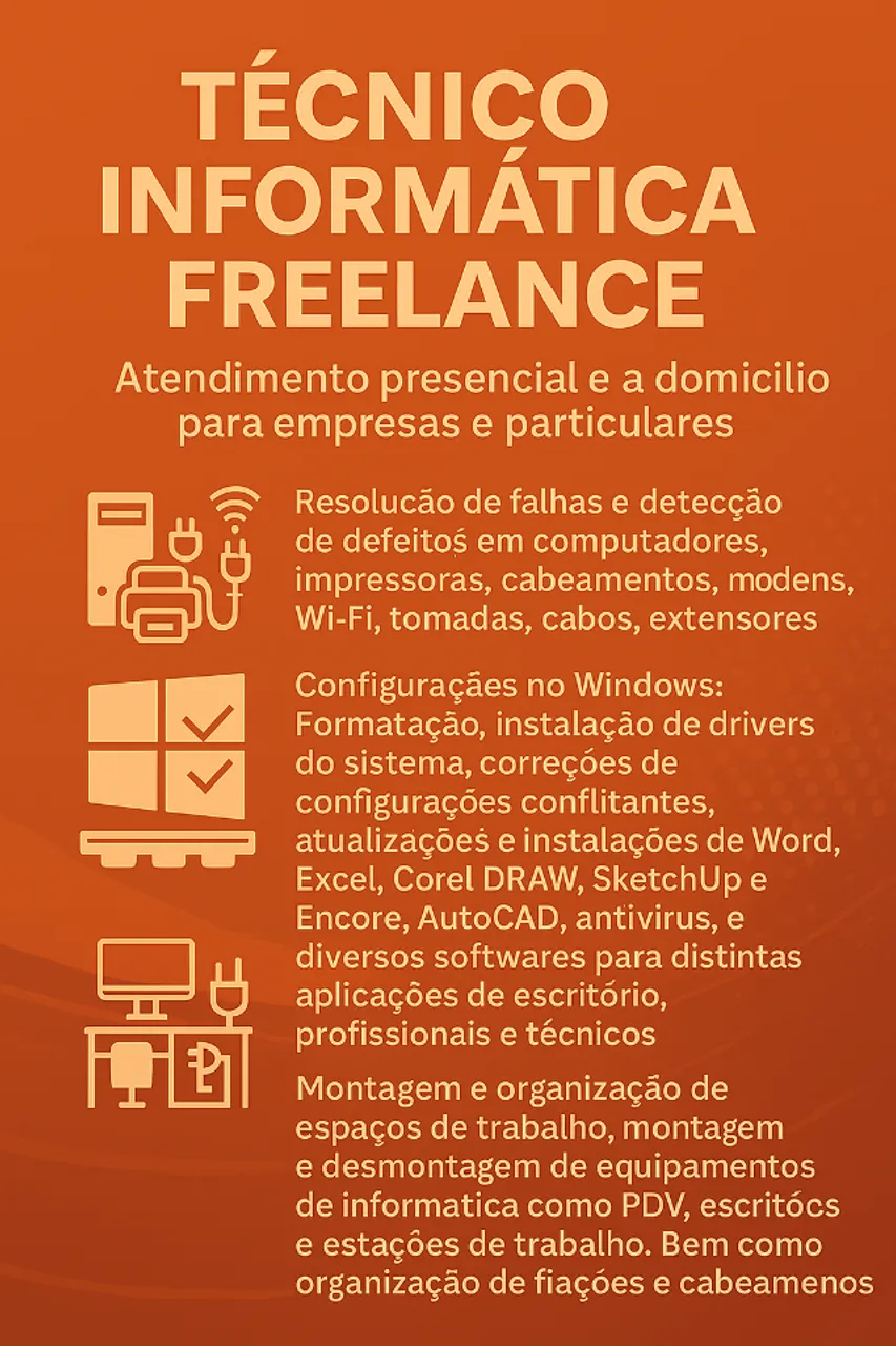 Serviços Técnicos Especializados em Informática. Atendo em Porto Alegre e Região Metropolitana. Presencial e Remotamente. Contatos somente pelo WhatsApp:
