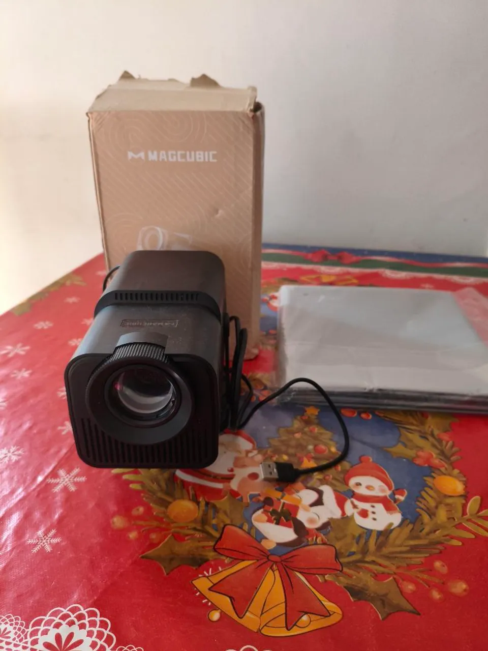 Projetor Magcubic compacto, ideal para diversas aplicações. Imagens nítidas e vibrantes para uma experiência visual imersiva.