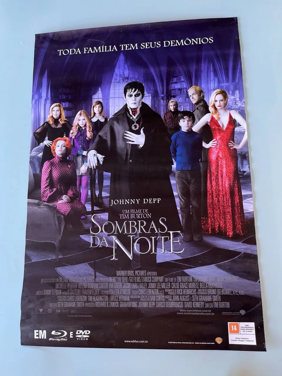 Pôster original do filme Sombras da Noite, com Johnny Depp. Uma ótima peça para colecionadores e fãs do filme!