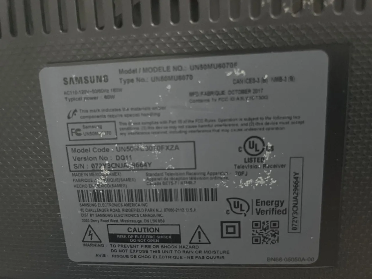 ?Modelo: UN50MU6070F