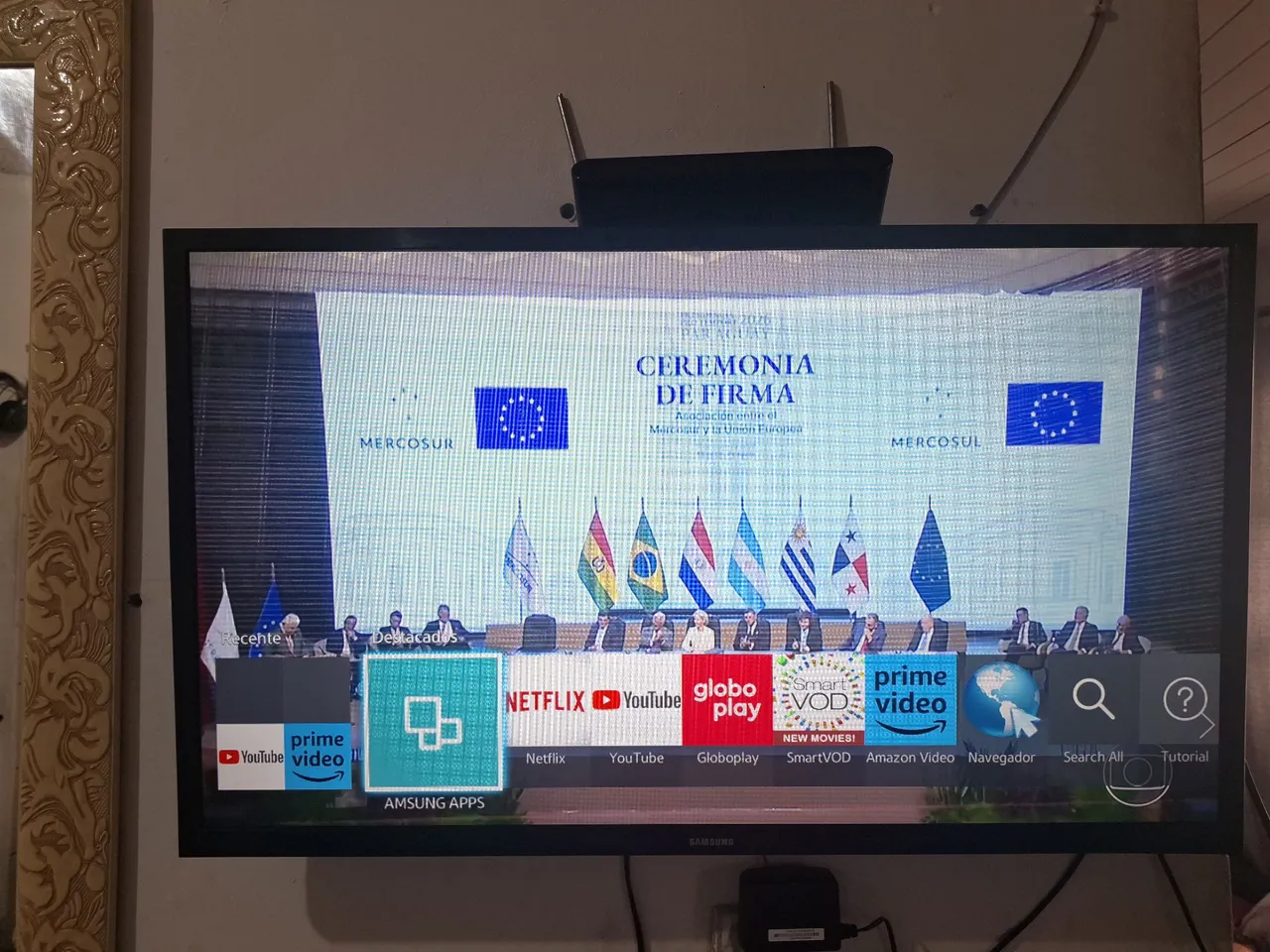 Tv funcionando perfeitamente, nao tenho os pés da tv uso suporte de parede, controle original funcionando. Ela é smart funcioona yt, amazon, mas funciona mais rapido com atualizações ou chorme cast. Nao entrego