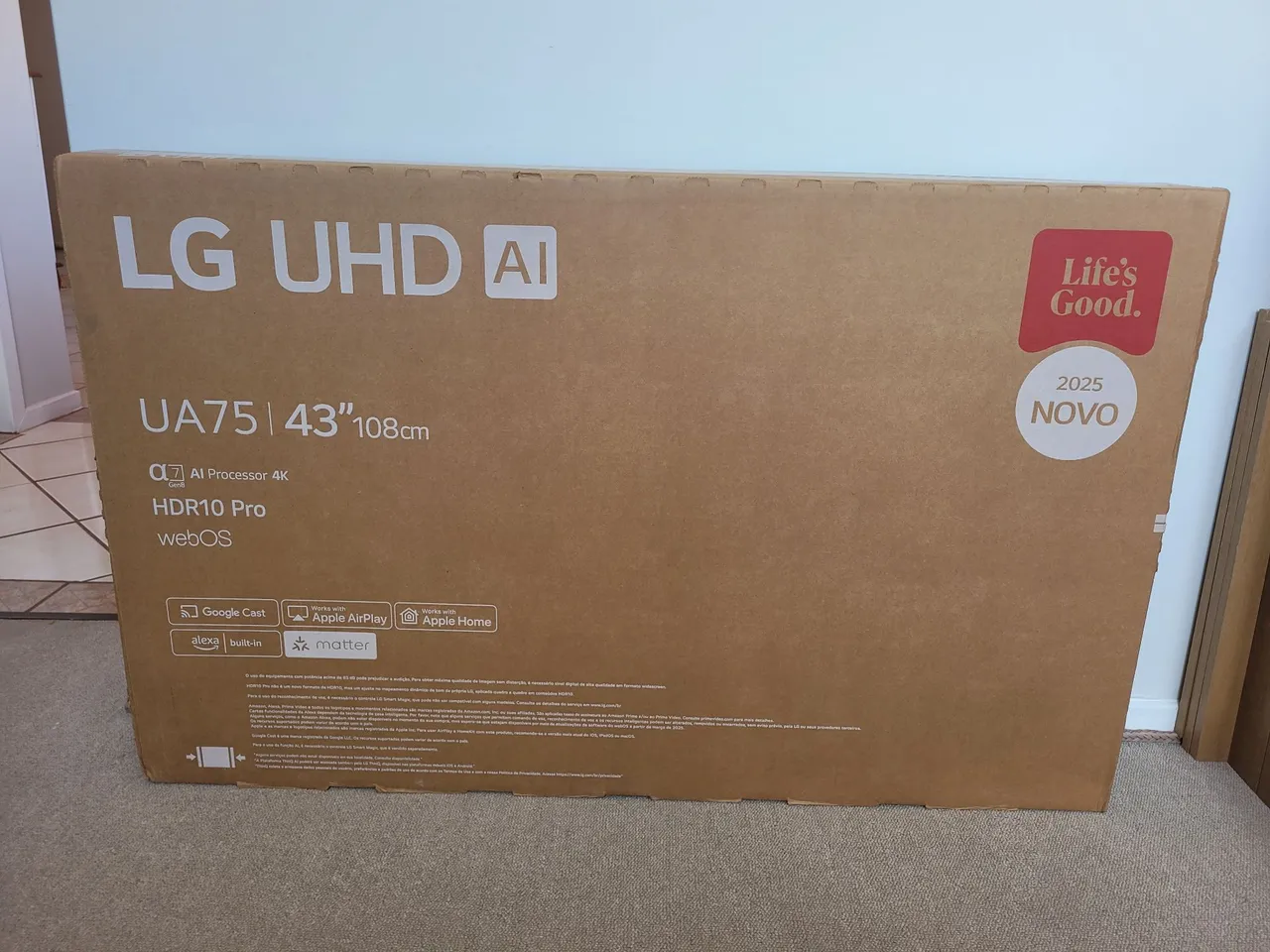 Smart TV 4K 43 polegadas LG UHD 43UA75 Processador a7 Al Ger8 4K Super Upscaling Google Cast Alexa Integrado, com controle remoto padrão WebOS 25