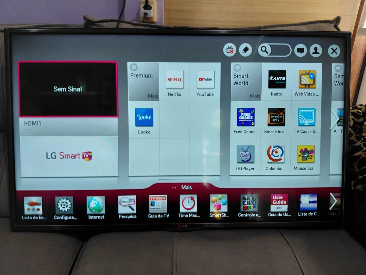 Smart TV LG de 42 polegadas, TV usada, esta com defeito na imagem que fica tremida de vez em quando, mais esta funcionando, nao tem pedestal, somente para colocar na parede.