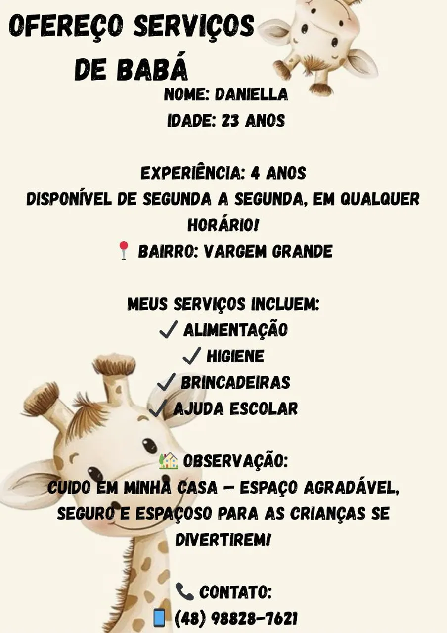 ? OFEREÇO SERVIÇOS DE BABÁ ?