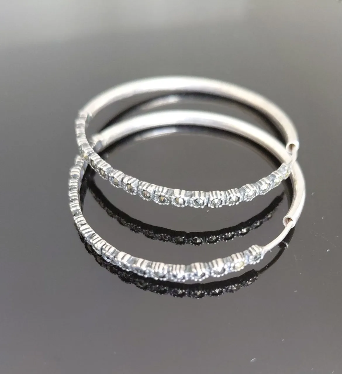 Brincos de prata com marcassita, discreta e sofisticada.
