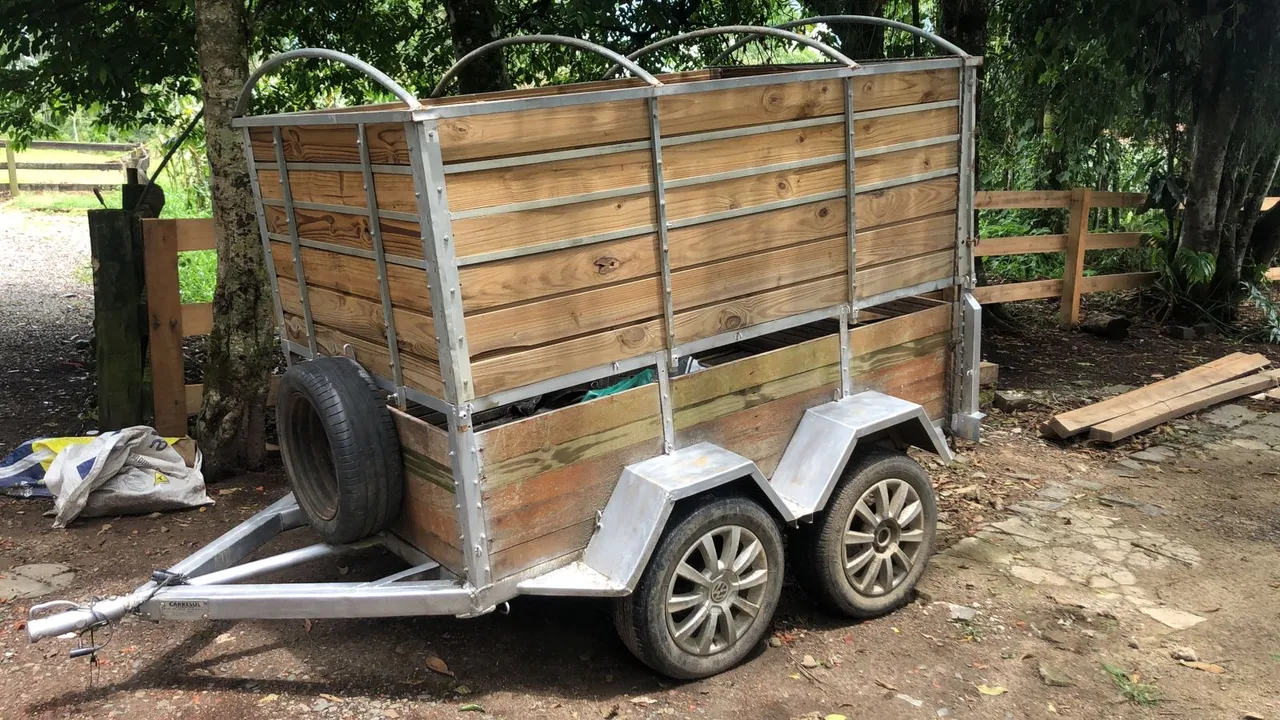 Reboque de 2 eixos para transporte de cargas diversas. Estrutura robusta e resistente, ideal para uso comercial. Perfeito para transportar seus produtos com segurança e praticidade.