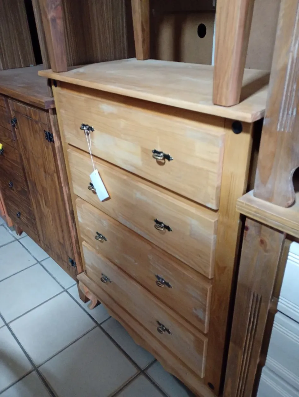 Cômoda cinco gavetas de madeira de pinus tratado com 6 meses de garantia