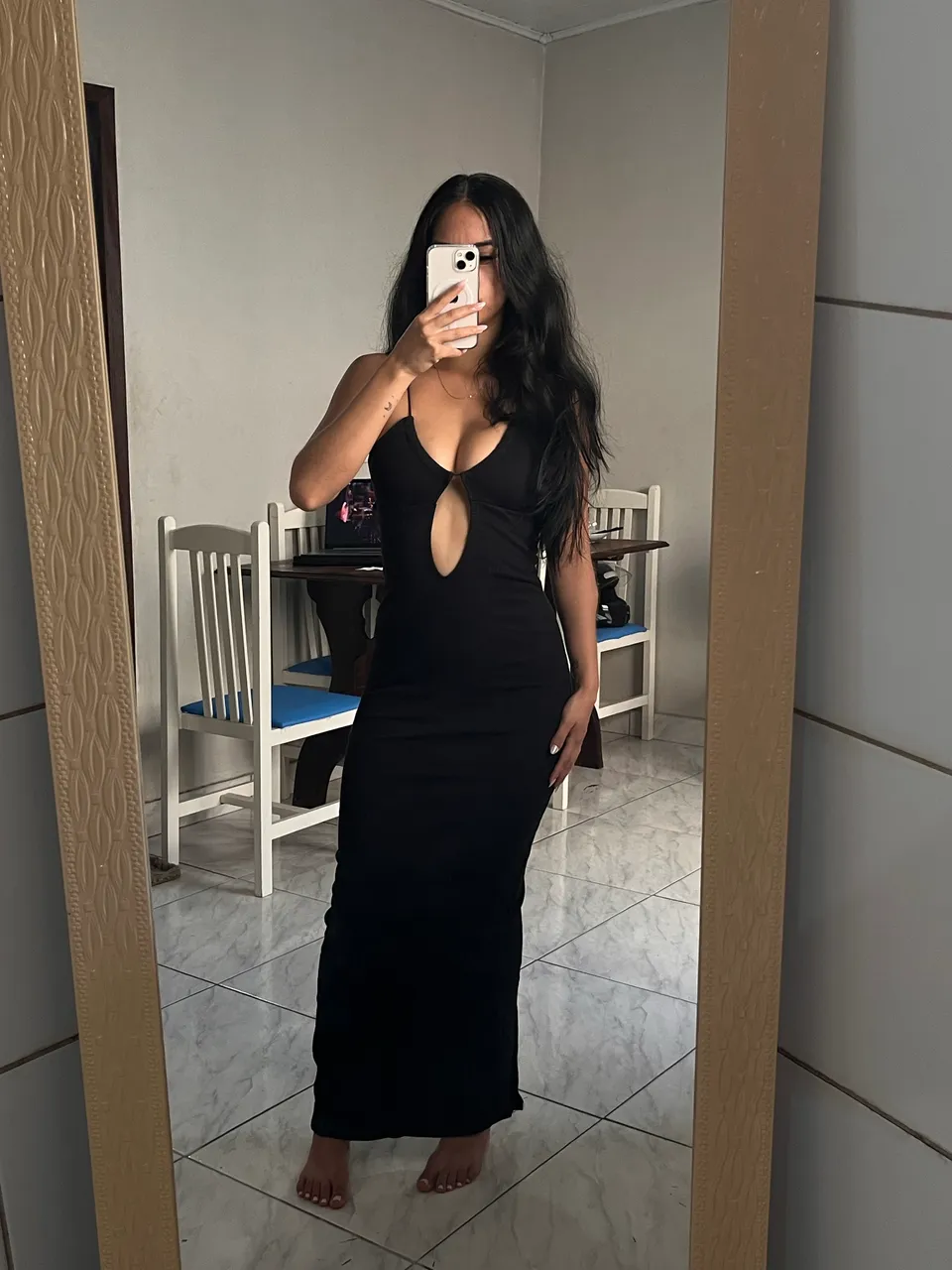 Vestido longo preto, perfeito para diversas ocasiões! Elegância e estilo em uma única peça. Ideal para quem busca um visual sofisticado e moderno.