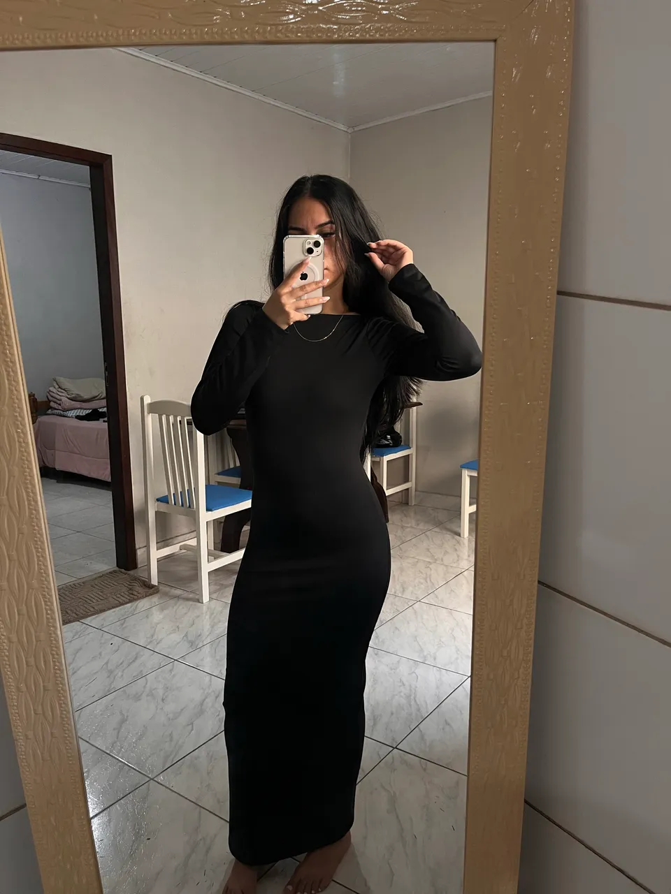 Vestido longo preto, perfeito para diversas ocasiões! Design elegante e confortável, ideal para quem busca estilo e praticidade. Combine com acessórios e crie looks incríveis!