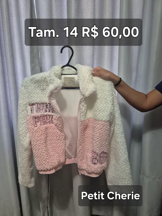 Casaco tam 14, usado pouquíssimas vezes, estado de novo, marca Petit Cherie