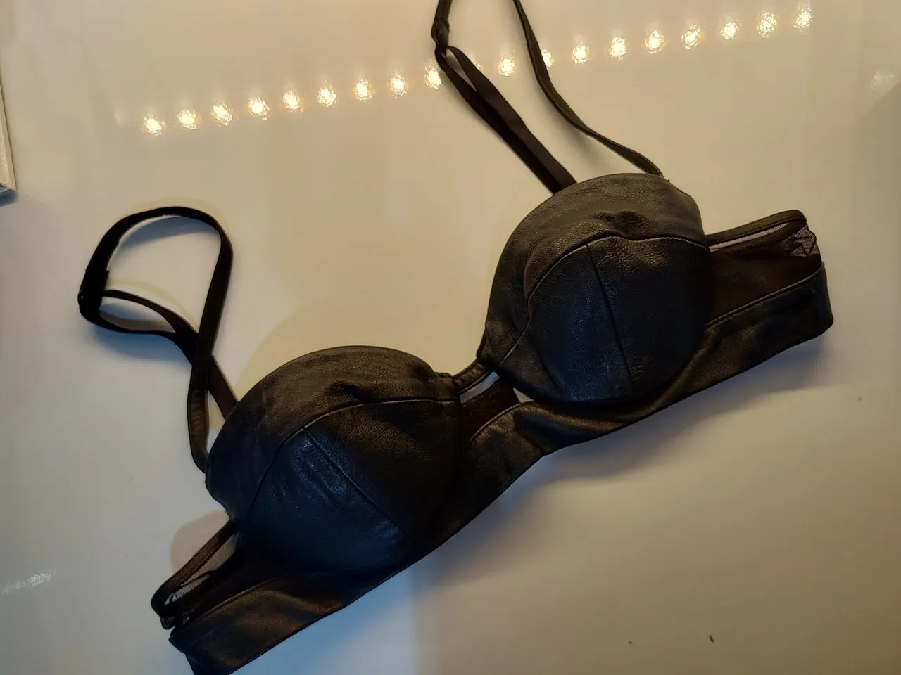 Desperte sua confiança com este sutiã de couro! Design elegante e sensual para você se sentir poderosa e estilosa. Uma peça que combina conforto e atitude para te acompanhar em qualquer ocasião. couro sintético , novo!