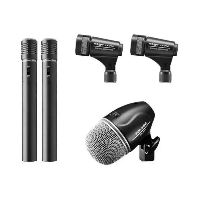 Este kit de bateria com fio de cinco microfones da Yoga tem tudo o que você precisa para gravar sua bateria discretamente e obter um som encorpado e potente. Ouça o timbre dos pratos, a pegada da caixa e a ressonância do bumbo, tudo com microfones independentes. Este kit inclui um microfone de alto desempenho especialmente ajustado para capturar a potência dos graves, além de microfones sensíveis e com resposta plana, ideais para captação aérea e reprodução de pratos.
